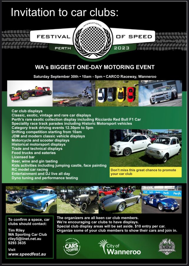 Below is the flyer for the Festival of Speed being held at CARCO Raceway, Wanneroo from 10am – 5pm on Saturday 30th September.