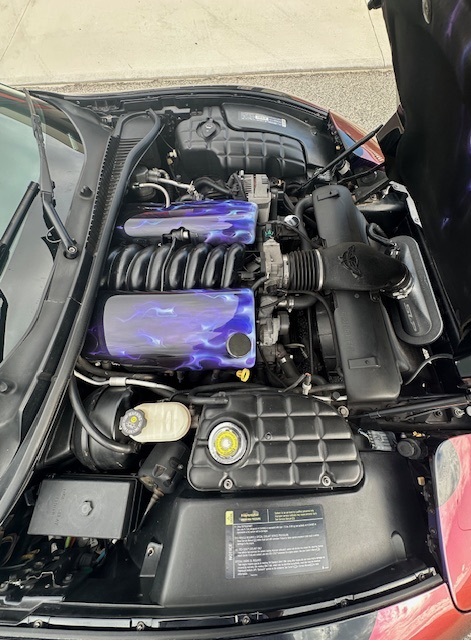 A set of 72 spoke Zenith knock off wire wheels add some ‘bling’ to the exterior . The vette has all its factory options which include Air cond , T/T wheel , P/w , P/b, 6 stacker CD player.